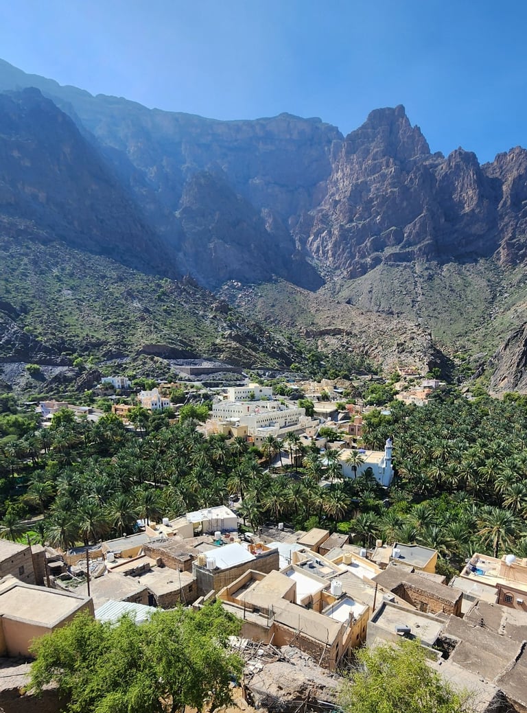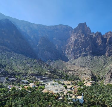 Bilad Sayt is a picturesque mountain village tucked away in the heart of the Hajar Mountains, offering a glimpse into Oman’s timeless beauty. Surrounded by towering peaks, the village is known for its traditional mud-brick houses, lush terraced farms, and winding falaj irrigation channels. Accessible only by rugged trails, Bilad Sayt feels like a hidden oasis, where life moves at a peaceful pace, and the breathtaking scenery makes the journey truly rewarding.