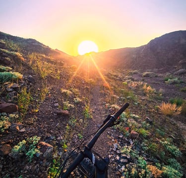 Trails are easy and fun, with steep climbs, thrilling descents, exciting jumps, a unique wooden bridge, and are located near a scenic wadi.