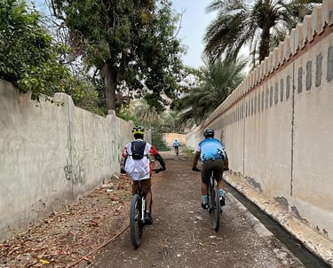 Trails winding through ancient villages in Muscat, leading you on a captivating journey amidst palm groves, falaj waterways, and natural springs. The route also includes Bousher Dam, surrounded by dense trees and vibrant birdlife, offering a chance to explore its scenic paths and the serene lake formed by the dam.
